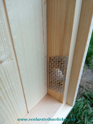 Víko je ve dvou protilehlích bocích opatřeno zasíťovanými otvory. Ty slouží k lepšímu odvodu vzdušné vlhkosti ven z úlu. Tím se dá částečně předcházet plesnivění rámků.